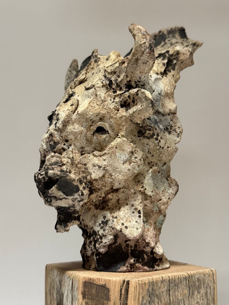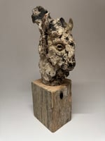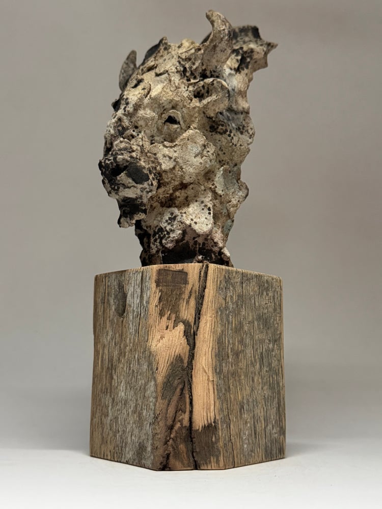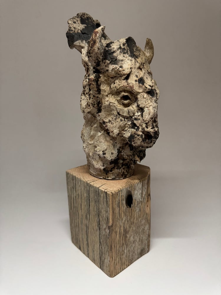 “Jed” is mounted on a piece of rustic wood and stands in at 11 inches tall X 3.5 inches wide.